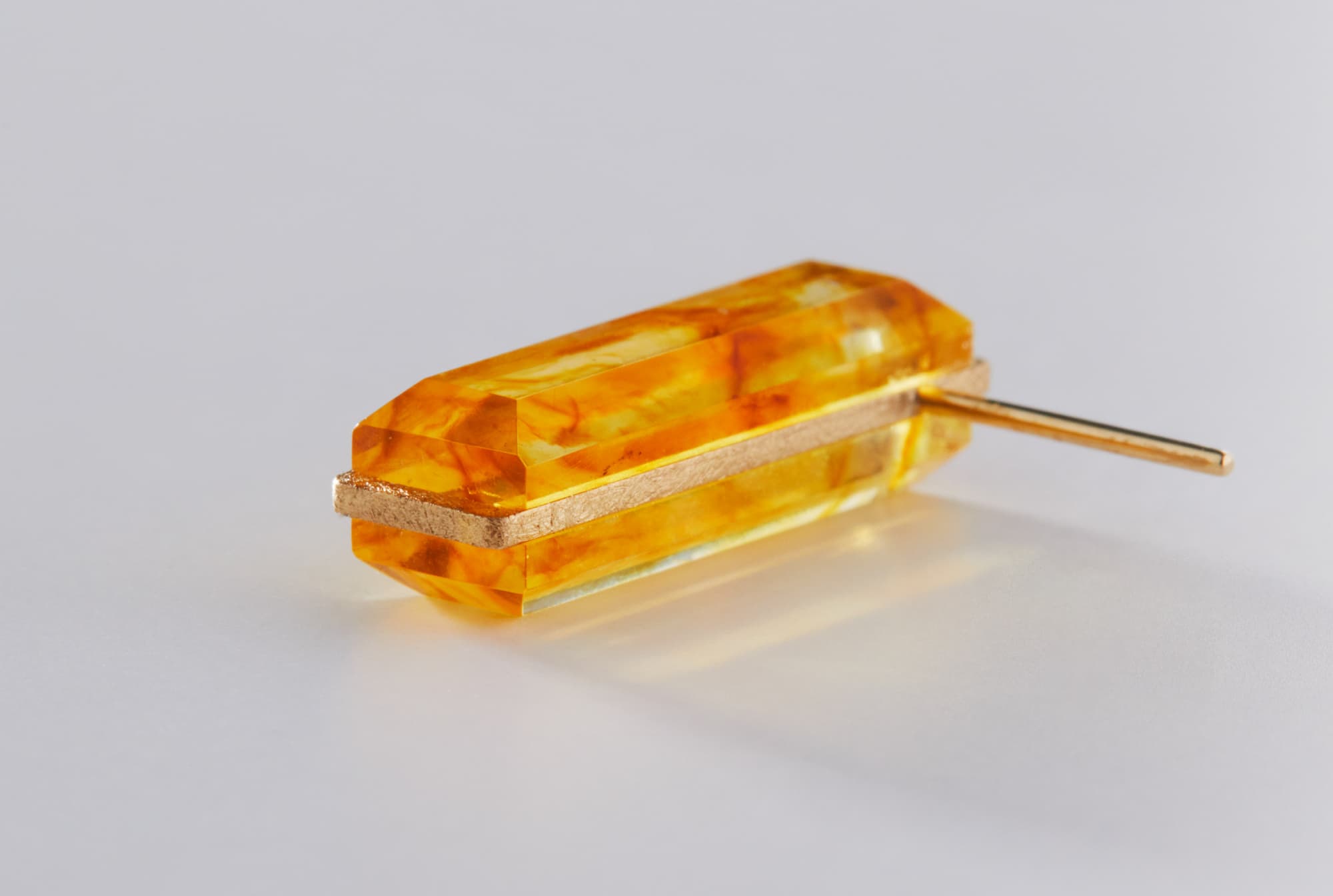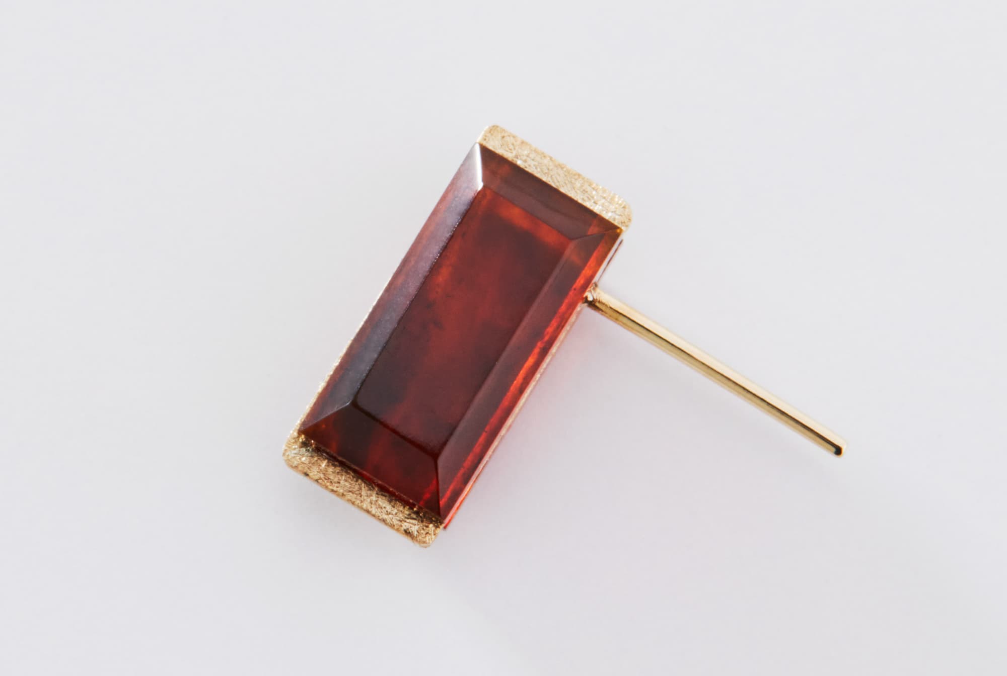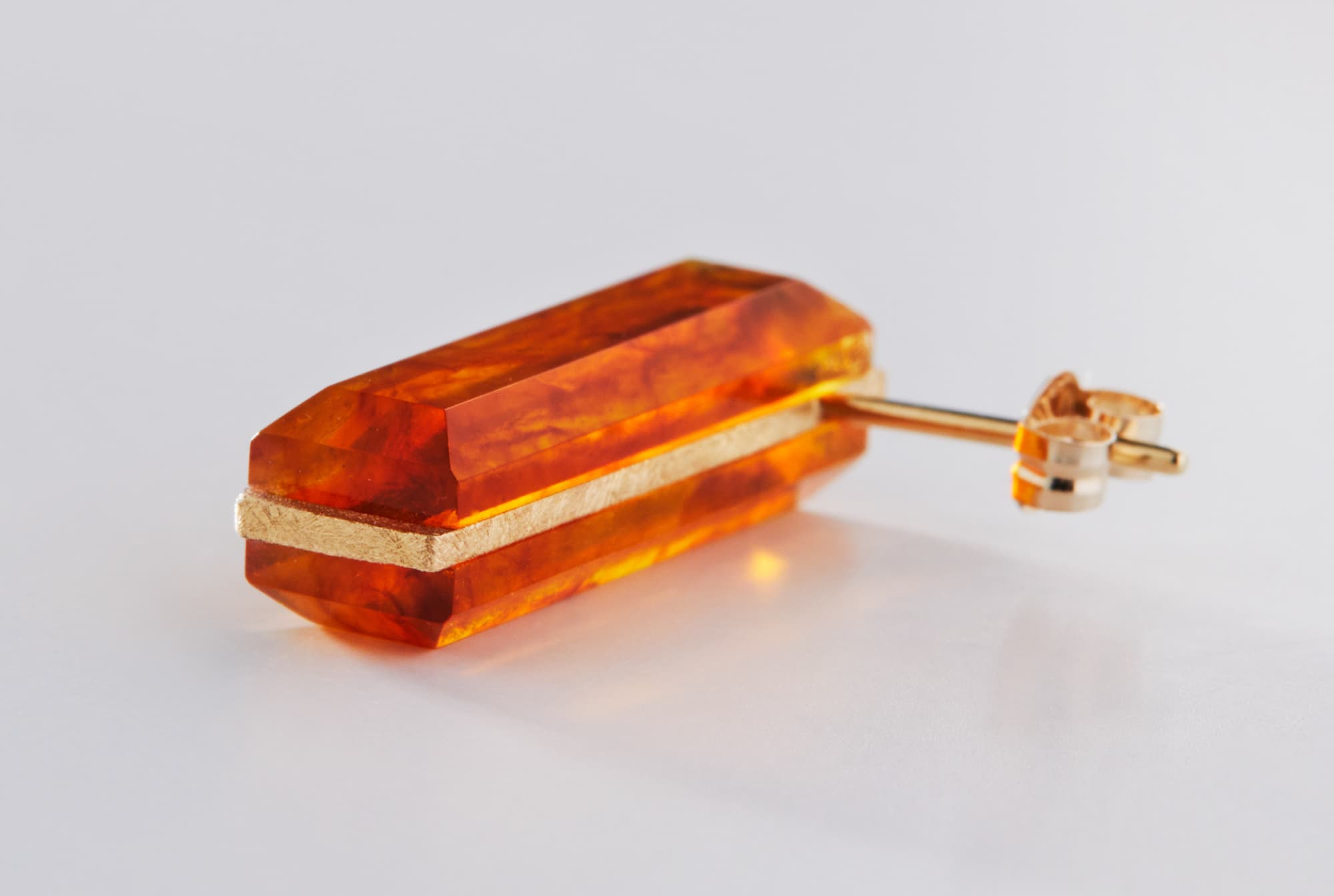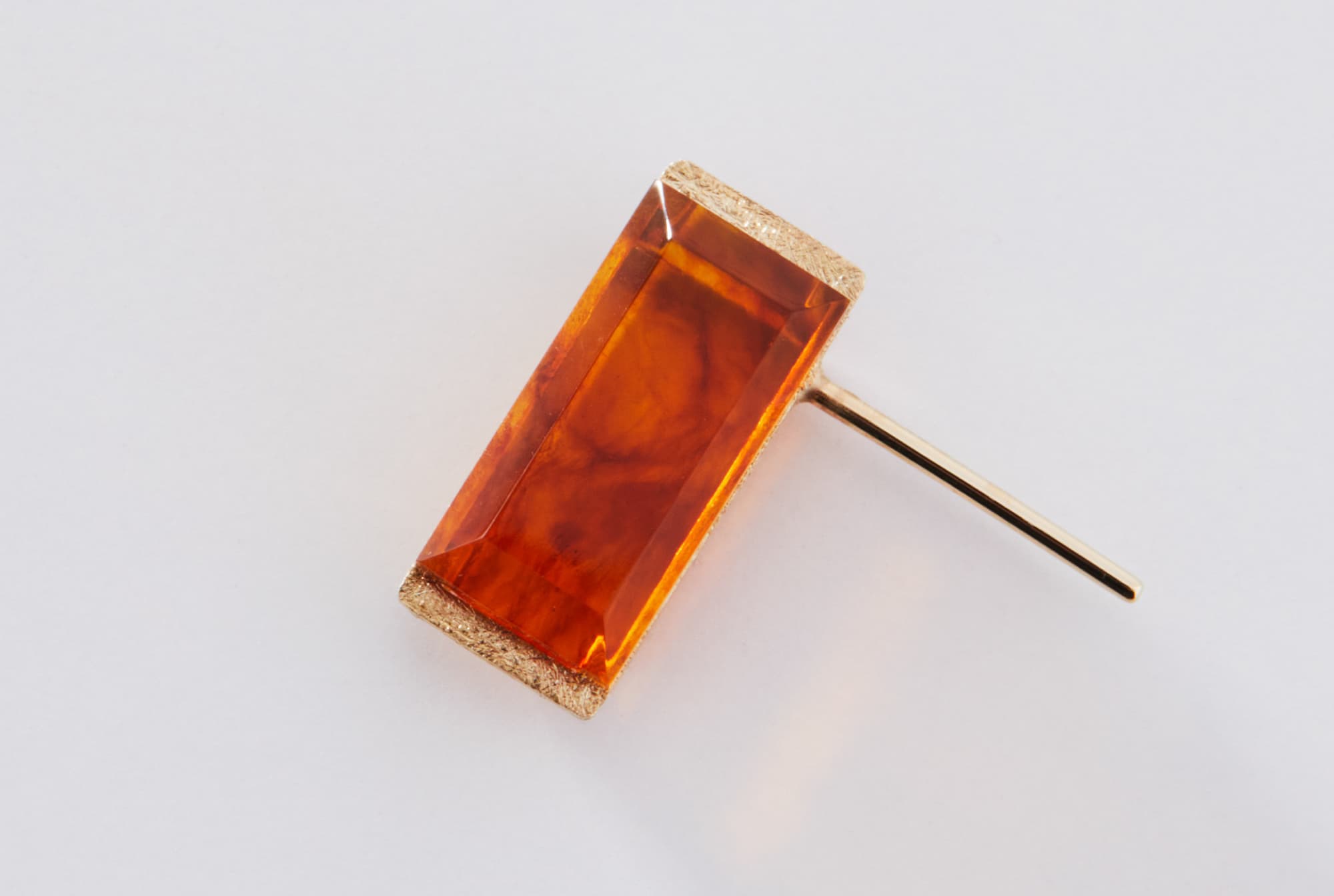 スクエア型の『リファインドアンバー』とゴールドのピアス。